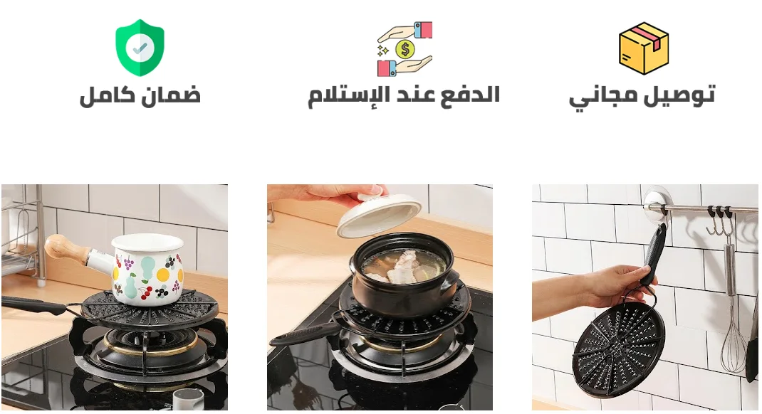 يحمي أدوات المطبخ الخاصة بك: يعمل موزع الحرارة هذا على حماية المقالي الخاصة بك ويمنع الطعام من الاحتراق، ويحمي الطاجين والأوعية الفخارية الأخرى من التآكل والتمزق